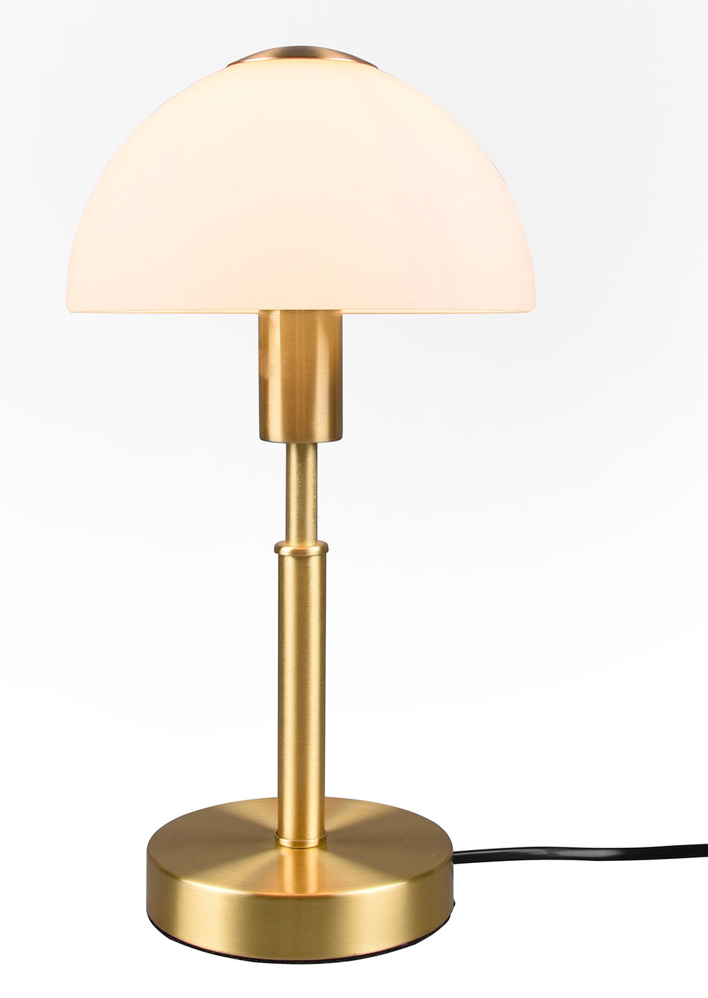 Don Ii Lampada Da Tavolo Cupola Vetro Bianco e Metallo Ottone Satinato con Interruttore H. 33Cm