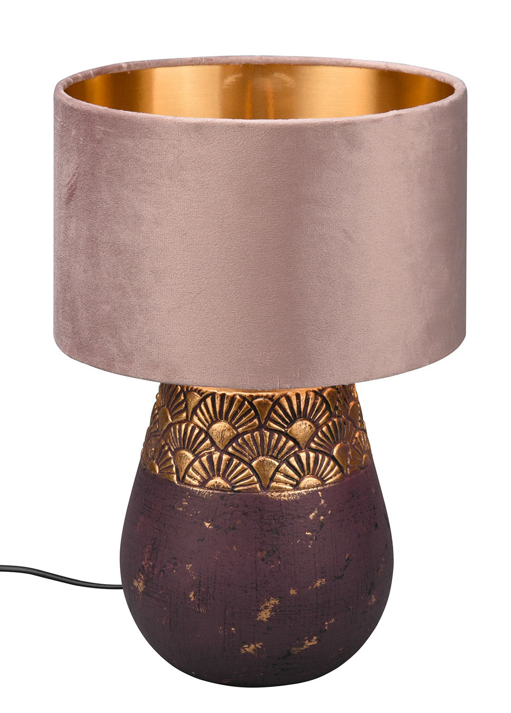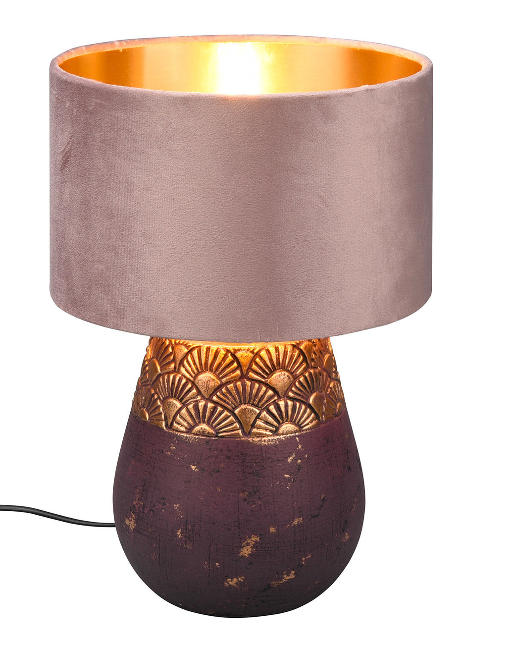 Kiran Lampada Da Tavolo Ceramica Marrone e Oro con Paralume Velluto Rosa Pastello e Oro H. 39Cm