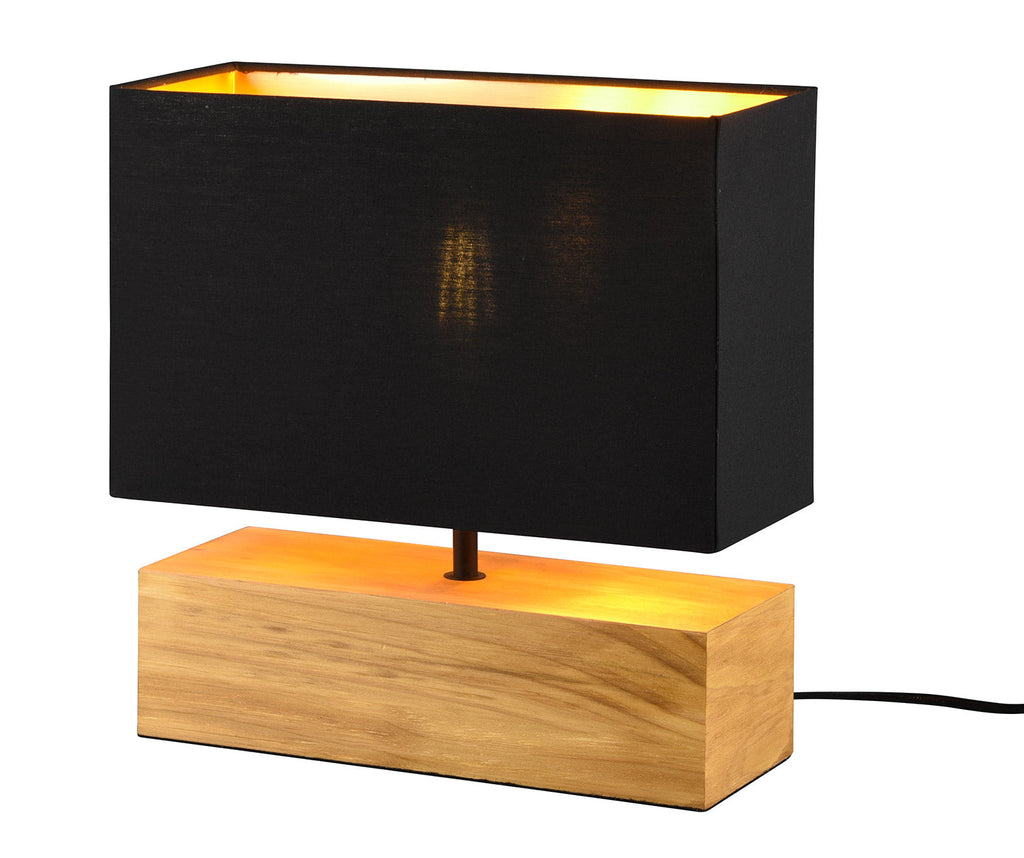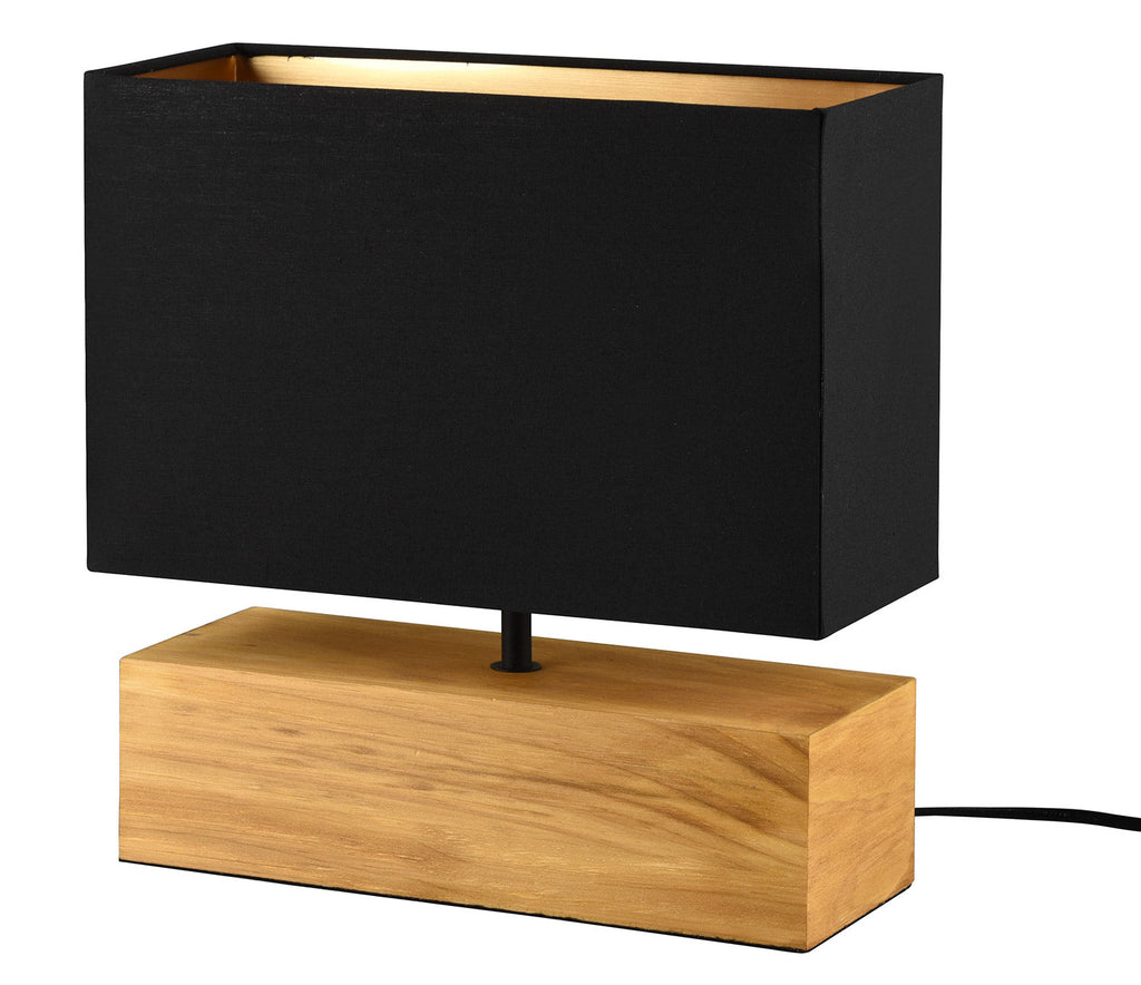 Woddy Lampada Da Tavolo Base Rettangolare Legno e Paralume Nero H. 30,5Cm X L. 30Cm