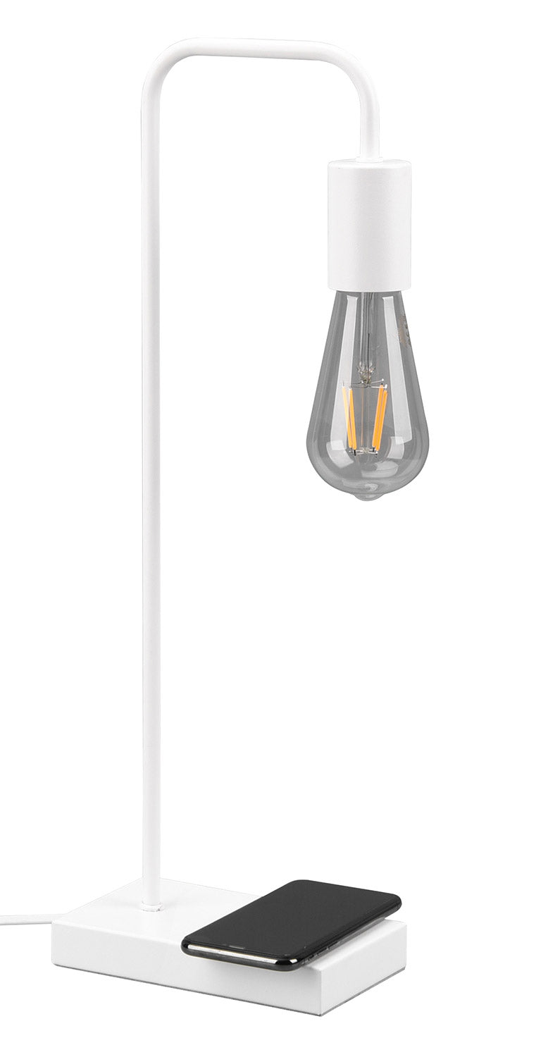 Milla Lampada Da Tavolo Bianca con Base X Ricarica Induttiva Cellulare con Interruttore Touch H. 51Cm