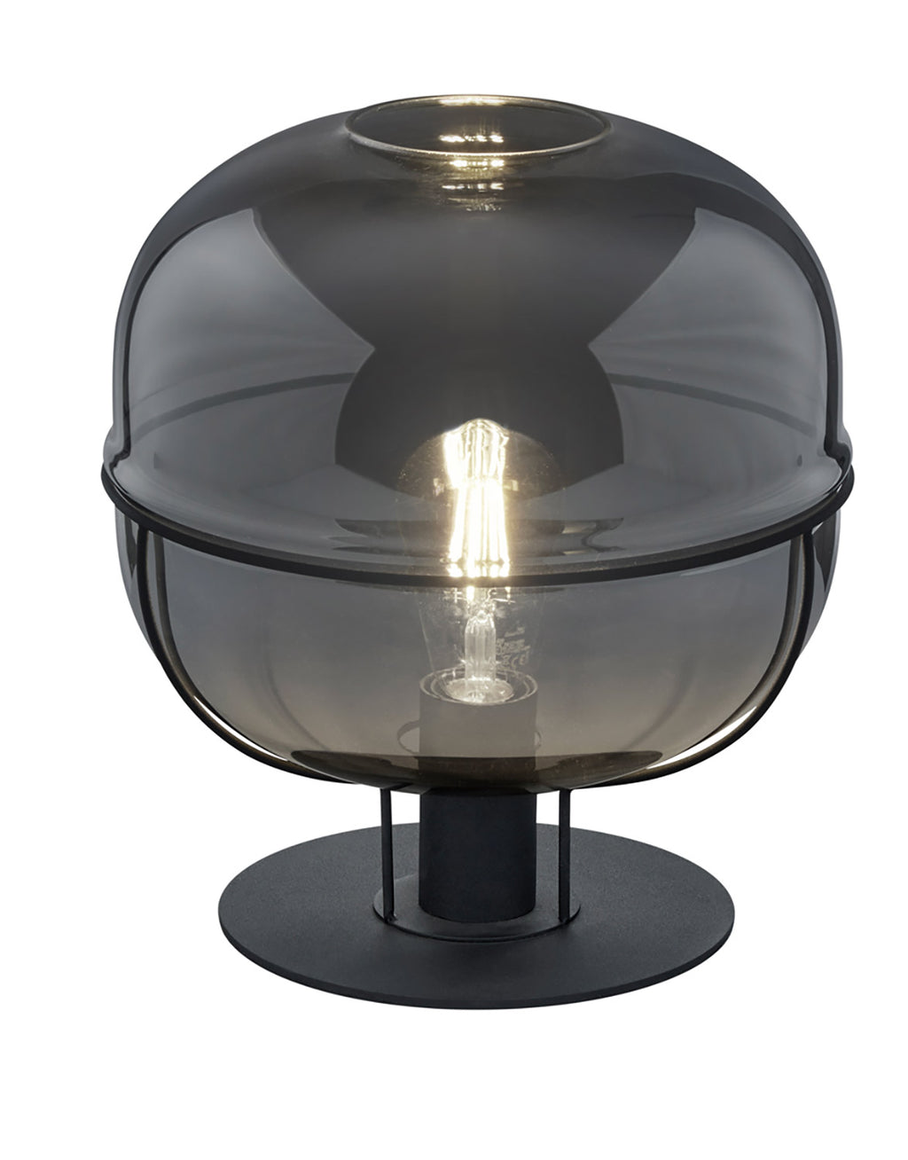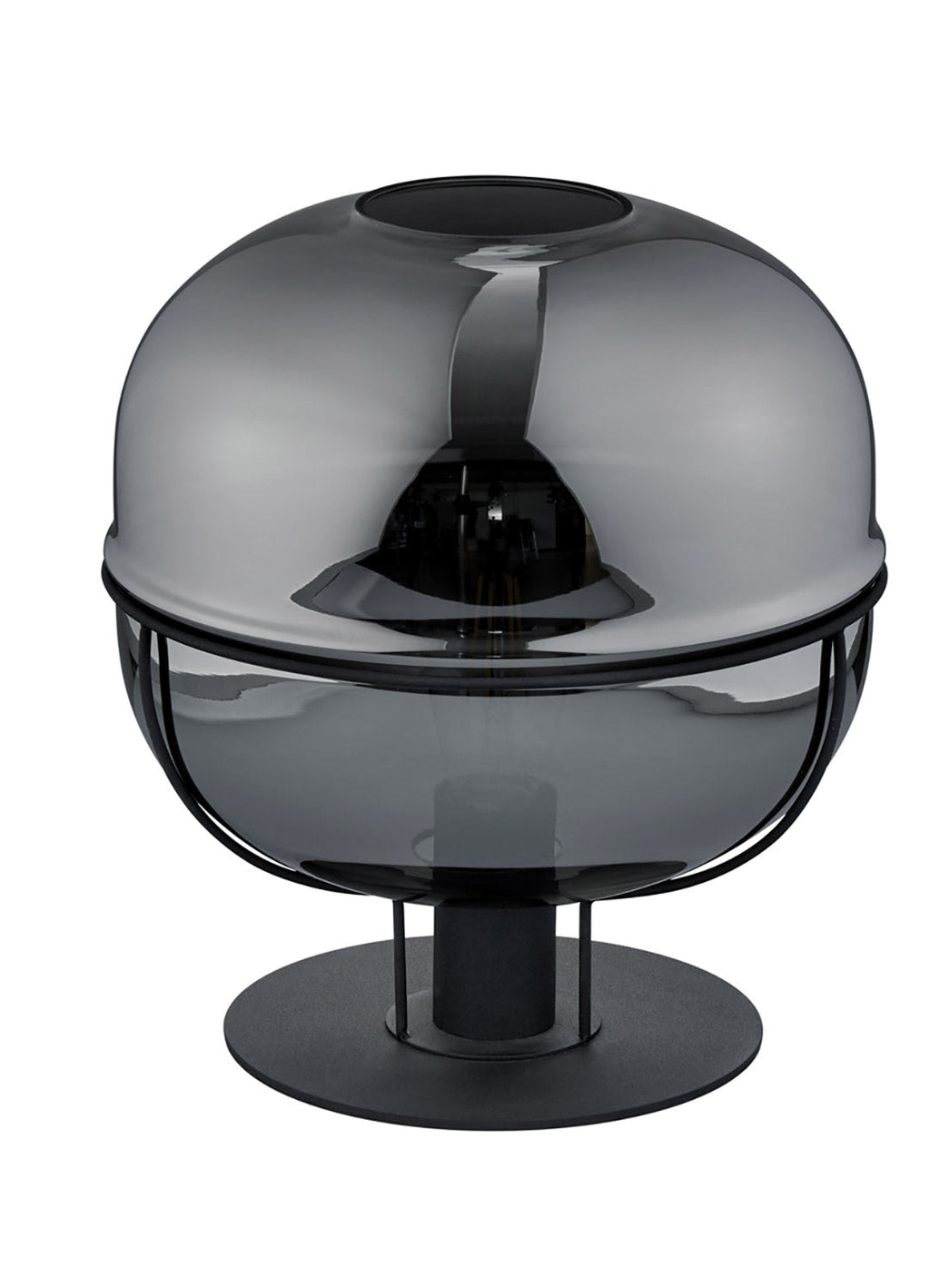 Lorena Lampada Da Tavolo Metallo Nero Vetro Fume' Cromato D. 30Cm