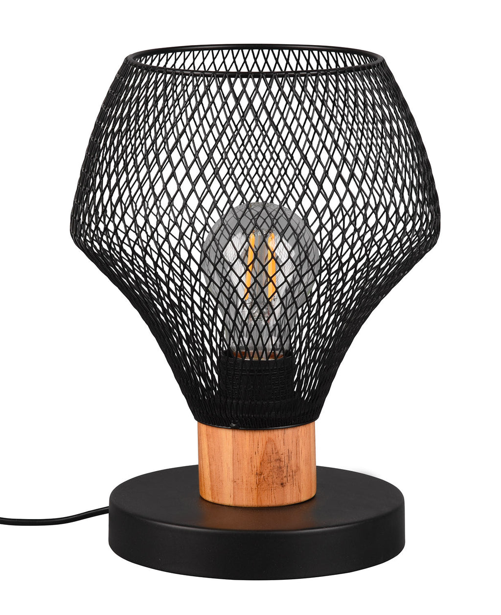 Valeria Lampada Da Tavolo Metallo Gabbia Nera con Particolare in Legno Naturale H. 25Cm
