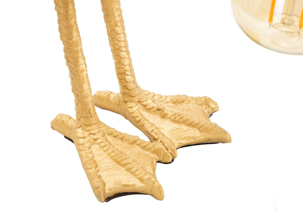 - La lampada da tavolo è realizzata in resina dorata e ha un affascinante fenicottero come decorazione principale