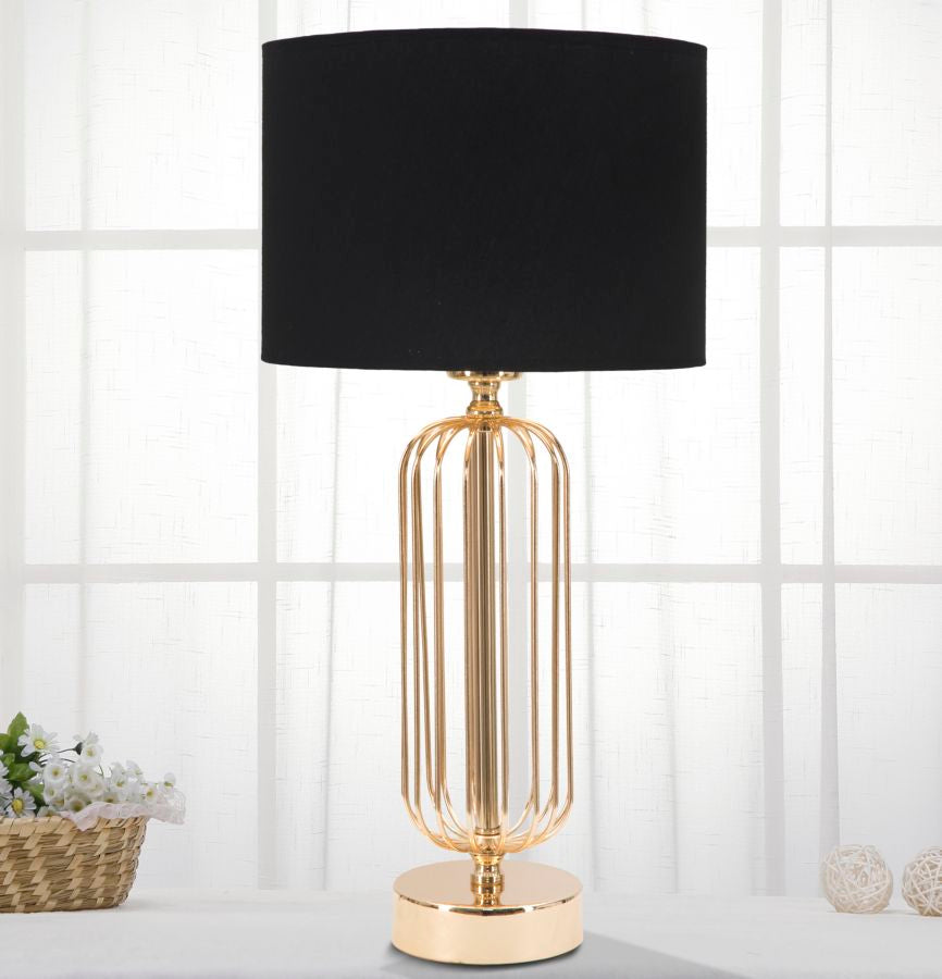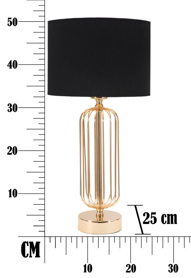 Lampada da Tavolo Glam Towy Ø25x51 cm in Ferro e Tessuto Nero e Oro