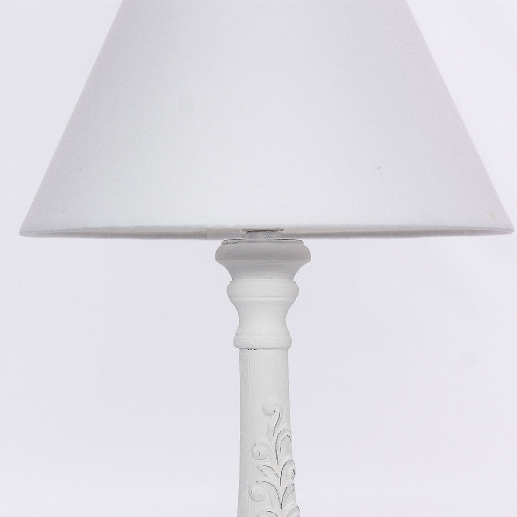 Lampada da tavolo in MDF. Design shabby. Paralume smontabile. Lampadina non inclusa. Accensione/spegnimento tramite interruttore a levetta sul cavo