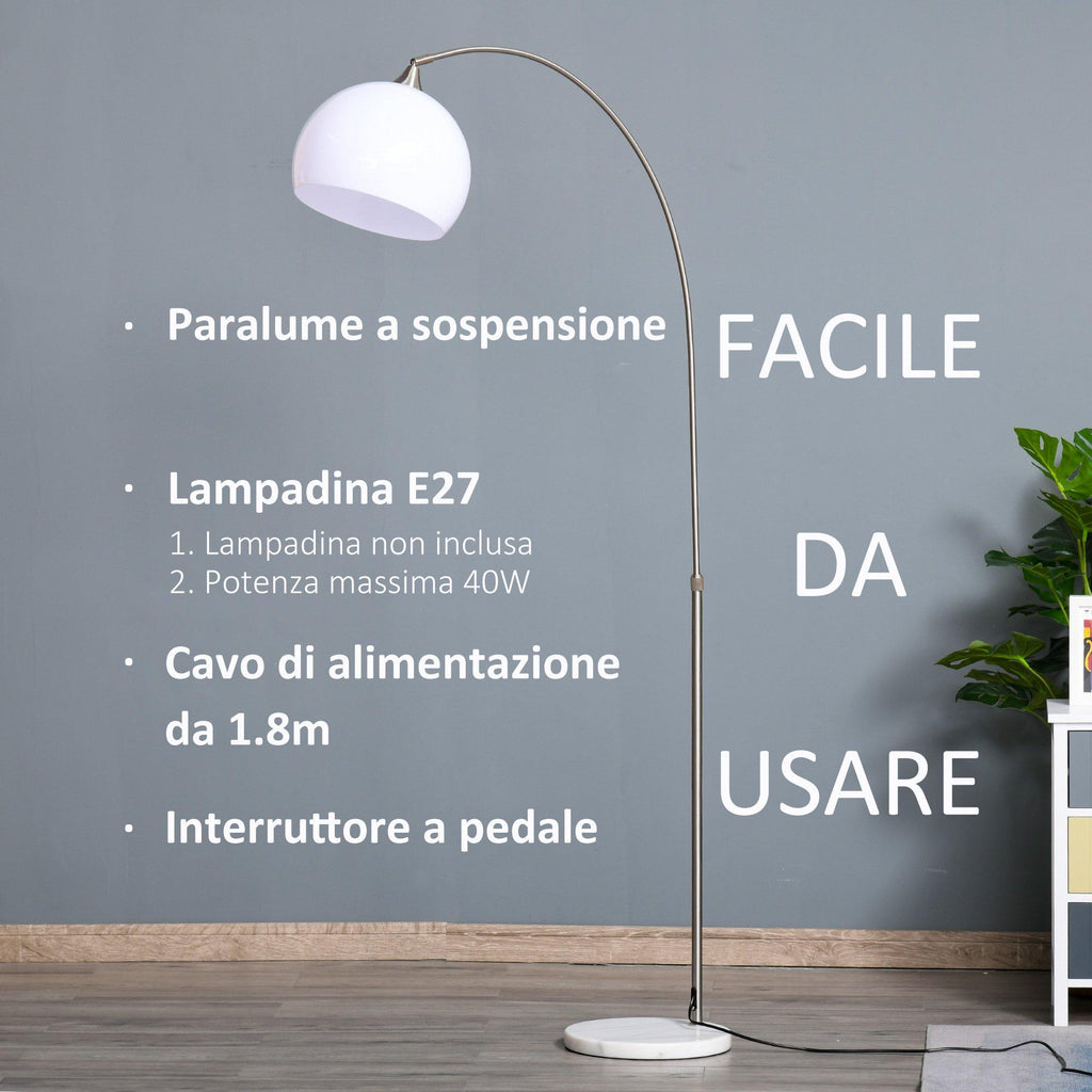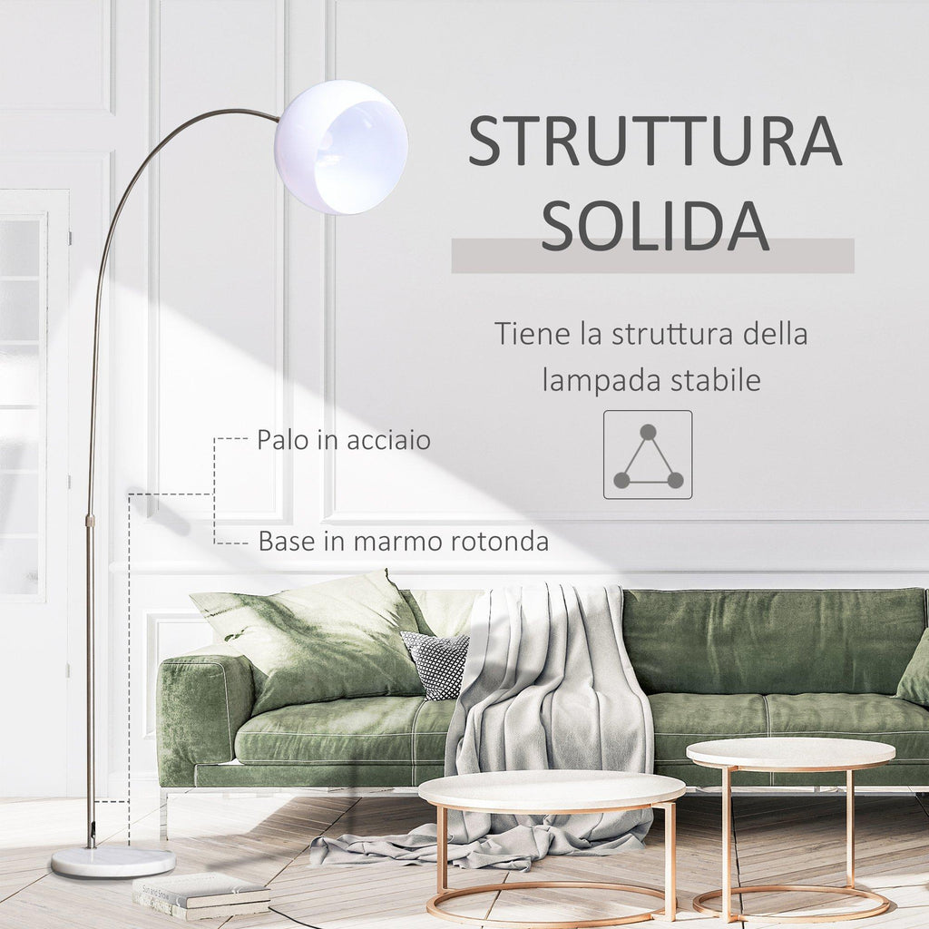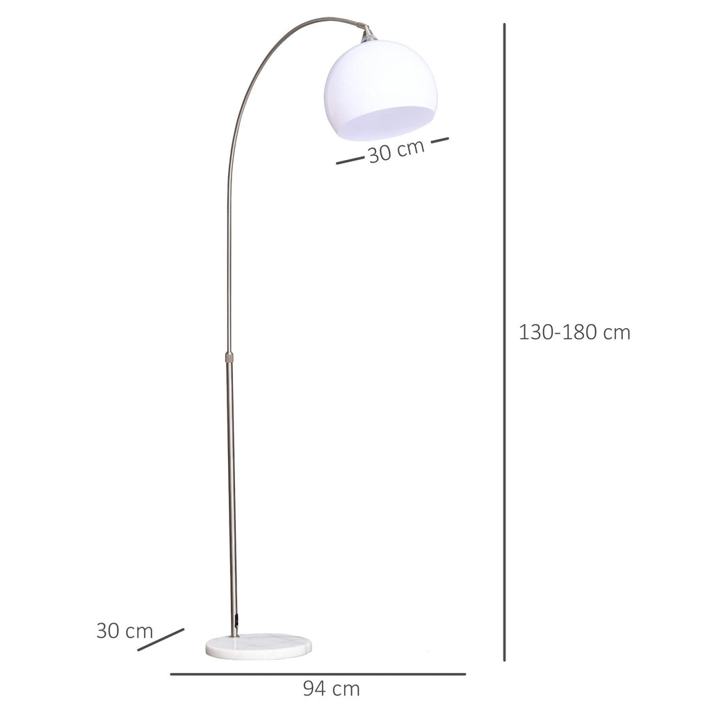Rinnova lo stile della tua illuminazione per interni con questa lampada moderna firmata HOMOCOM. Il design della lampada ad arco permette la regolazione in altezza fino a 180cm e con il paralume regolabile a 350° puoi scegliere dove indirizzare la luce. Il palo in metallo e la base in marmo assicurano stabilità e un bilanciamento ottimale. Questa lampada dallo stile chic e moderno completerà il tuo arredamento di casa e dell'ufficio portando un tocco di originalità.