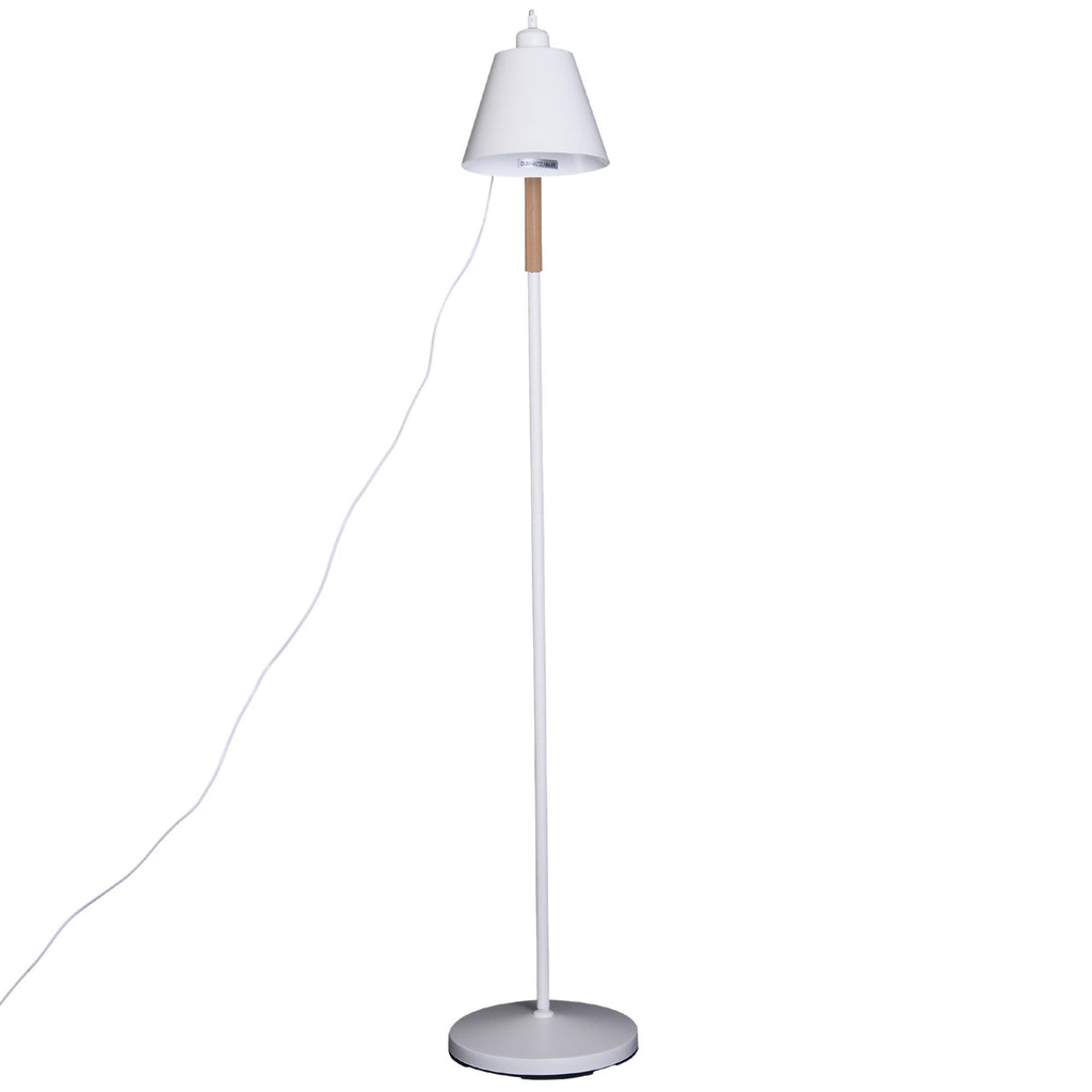 Lampada da Terra Bianca Paralume Regolabile in Metallo e Legno