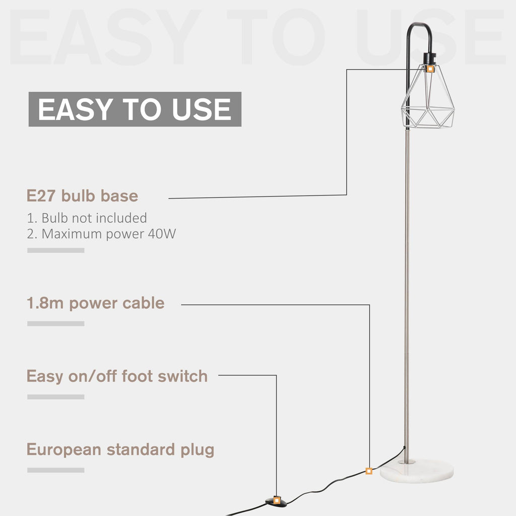 Porta un'illuminazione elegante in casa e in ufficio con questa lampada da terra . Il palo in metallo è resistente e la base in marmo assicura la massima stabilità, mentre il paralume in filo di ferro dona un tocco originale. Facile da usare grazie al pratico interruttore a pedale, questa lampada a piantana è perfetta per illuminare di stile i tuoi ambienti.