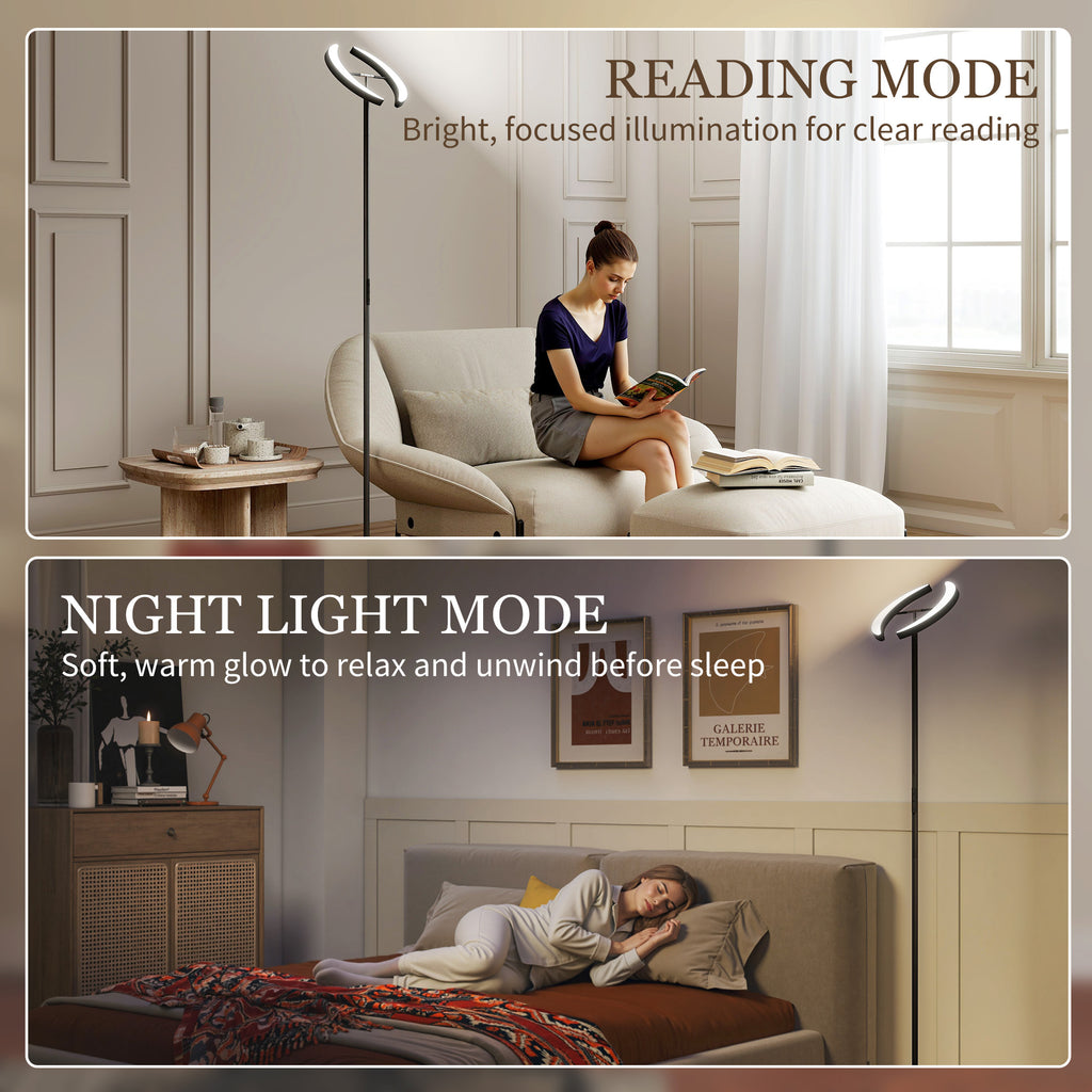 Lampada da Terra Dimmerabile 2700K-6000K con Telecomando e Doppia Testa Girevole a 350° Nero