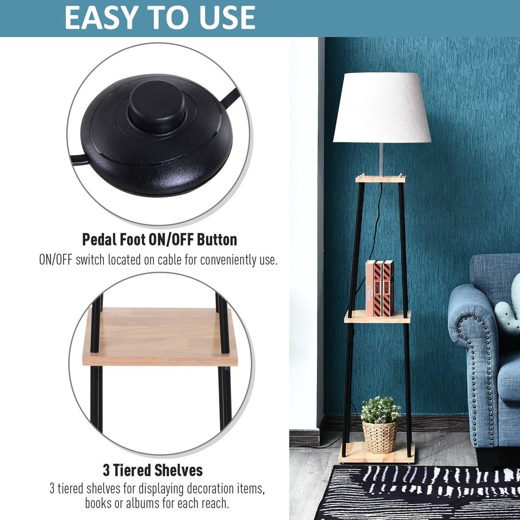 Lampada da Terra in Tessuto con 3 Ripiani 40x40x160 cm Beige