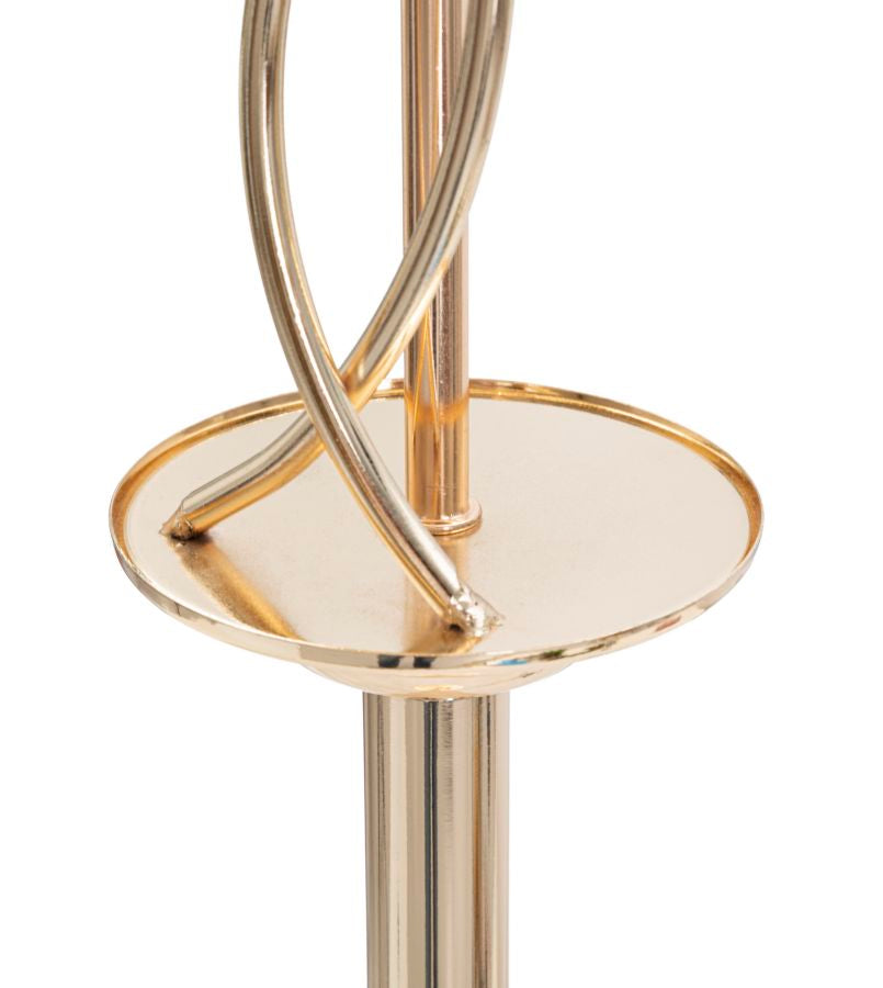 Questa piantana in metallo dorato è un mix di eleganza e stile. Il paralume in tessuto nero aggiunge un tocco di mistero e raffinatezza all'intero design. La decorazione raffigurante foglie conferisce un delicato tocco naturale, rendendo questa lampada un elemento di grande impatto estetico. L'abbinamento tra l'oro e il nero crea un contrasto perfetto, adattandosi con stile a qualsiasi ambiente, dall'arredamento classico a quello moderno.