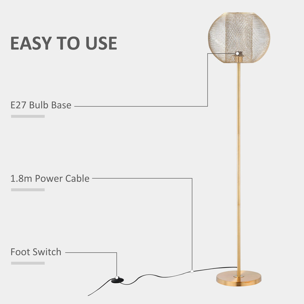 Lampada da Terra Ø35x150 cm E27 Paralume Sferico Oro
