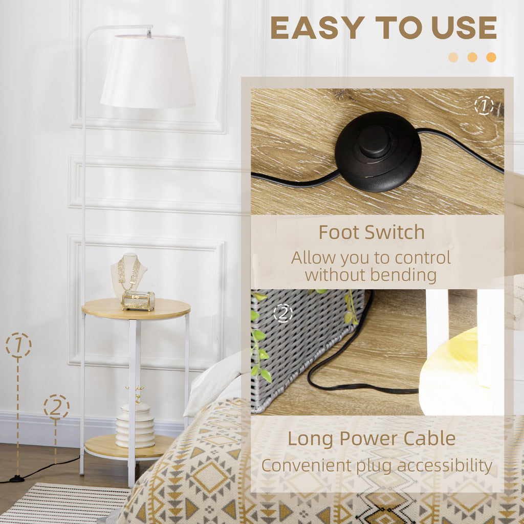 Lampada da Terra Ø37x162 cm con Tavolino a 2 Livelli in Acciaio e Bambù Bianco