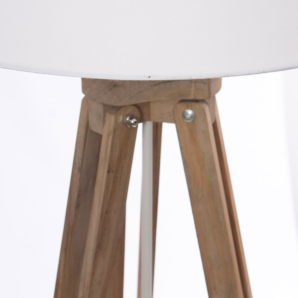 Lampada da terra treppiede con gambe della lampada in legno e paralume bianco smontabile. Le lampade treppiede richiedono più spazio rispetto alle lampade da terra standard per via delle loro gambe sporgenti. Accensione/spegnimento tramite interruttore a pedale sul cavo. (Lampadina non inclusa)