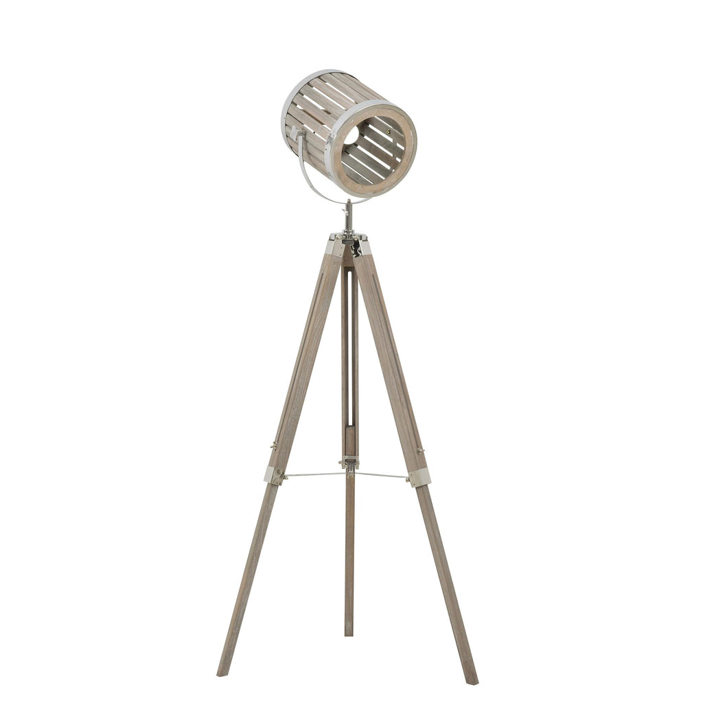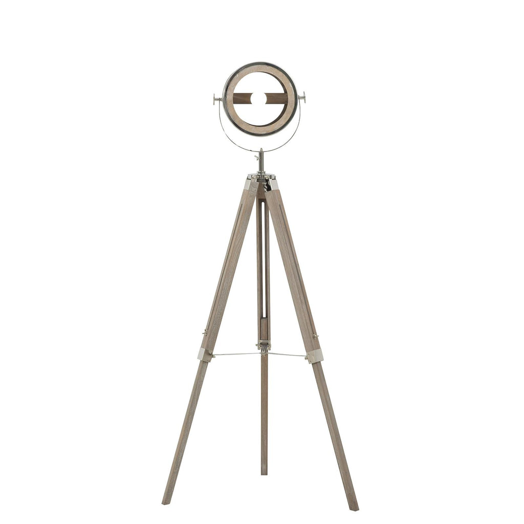 Lampada da Terra Tripode in Legno di Pino e Acciaio