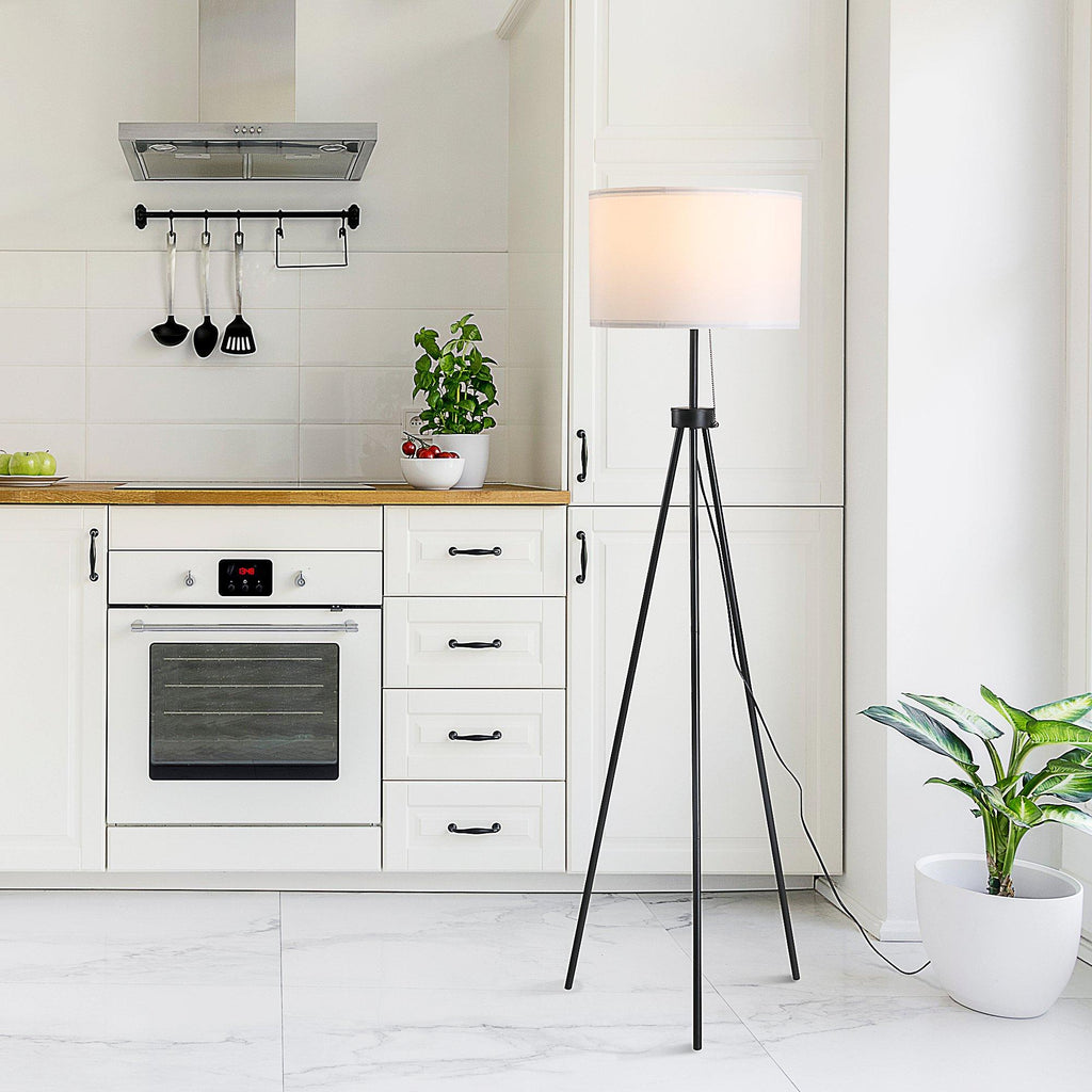 Lampada da Terra Tripode in Metallo con Paralume H152 cm E27 Nero e Bianco