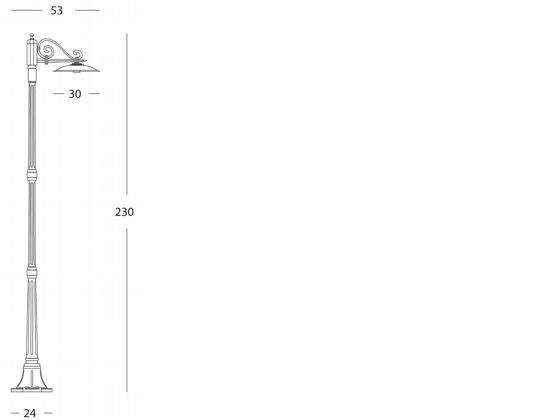 Lampada palo alto per giardino colore grigio per esterno linea piatto antico. Struttura in pressofusione di alluminio. Trattamento anticorrosivo. Verniciatura a polveri epossidiche. Piatto in alluminio verniciato e smaltato bianco. Copri portalampada di alluminio in tinta con guarnizione in gomma siliconica. Portalampada E27 in porcellana. Accessori per il fissaggio inclusi. Adatta per lampade a risparmio energetico con protezione in silicone. Alimentazione 230 V ~ 50 Hz. Dispositivo di connessione. Triangolo di fissaggio a terra. Classe di protezione: IP43 Potenza massima lampade: 25W