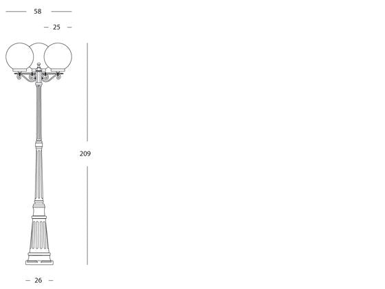 Lampada Palo Alto Tre Luci per Giardino Colore Nero Diametro 25Cm per Esterno Linea Sfera Livos