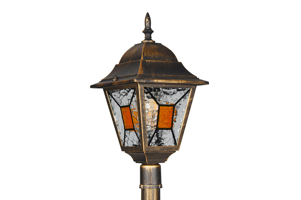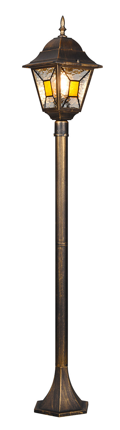 Imperia Palo Da Esterno 4 Lati Fusione di Alluminio Ruggine e Vetro Verniciato Effetto Ghiaccio Ed Inserto Giallo H. 120Cm Ip44