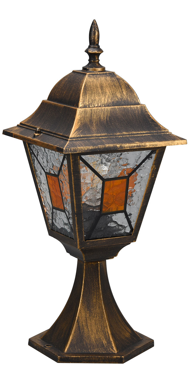 Imperia Palo Segnaviali Da Esterno 4 Lati Fusione di Alluminio Ruggine e Vetro Verniciato Effetto Ghiaccio Ed Inserto Giallo H. 44Cm Ip44