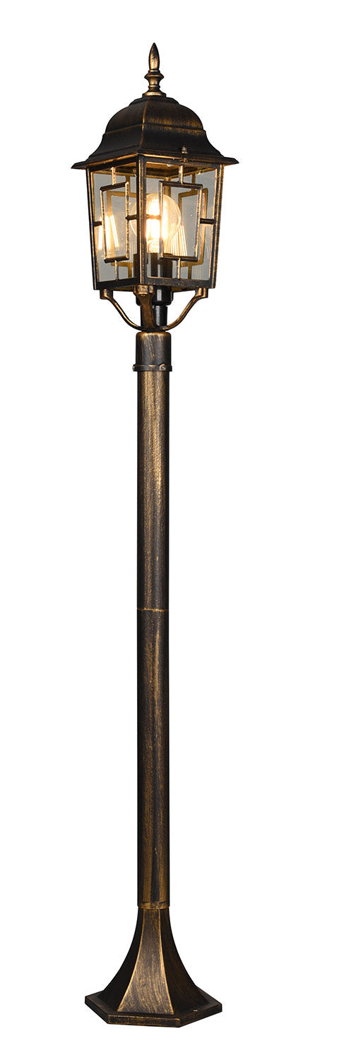 Volturno Palo Da Esterno 4 Lati Fusione di Alluminio Ruggine con Decoro in Fusione Sul Vetro e Vetro Trasparente H. 100Cm Ip44