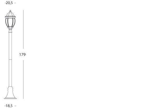 Lampada palo medio per giardino colore grigio per esterno linea olive. Struttura in pressofusione di alluminio. Trattamento anticorrosivo. Verniciatura a polveri epossidiche. Diffusori in vetro trasparente molato e curvato. Copri portalampada di alluminio in tinta. Portalampada E27 in porcellana. Accessori per il fissaggio inclusi. Adatta per lampade ad incandescenza. Adatta per lampade a risparmio energetico. Altezza max lampade mm 200. Alimentazione 230 V ~ 50 Hz. Dispositivo di connessione. Triangolo di fissaggio a terra. Classe di protezione: IP43 Potenza massima lampade: 60W