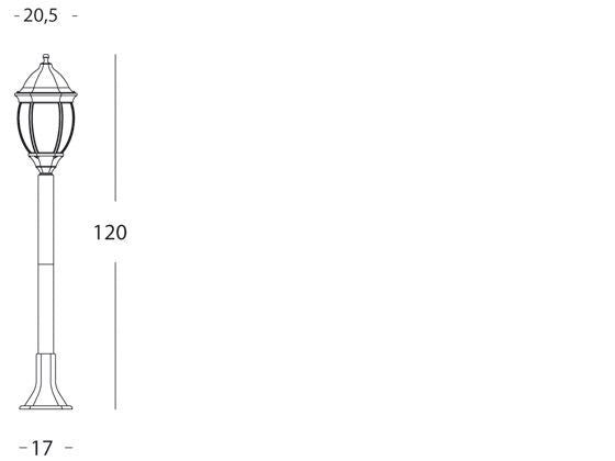 Lampada palo paletto per giardino colore grigio per esterno linea olive. Struttura in pressofusione di alluminio. Trattamento anticorrosivo. Verniciatura a polveri epossidiche. Diffusori in vetro trasparente. Copri portalampada di alluminio in tinta. Portalampada E27 in porcellana. Accessori per il fissaggio inclusi. Adatta per lampade ad incandescenza. Adatta per lampade a risparmio energetico. Altezza max lampade mm 170. Alimentazione 230 V ~ 50 Hz. Dispositivo di connessione. Classe di protezione: IP43 Potenza massima lampade: 60W