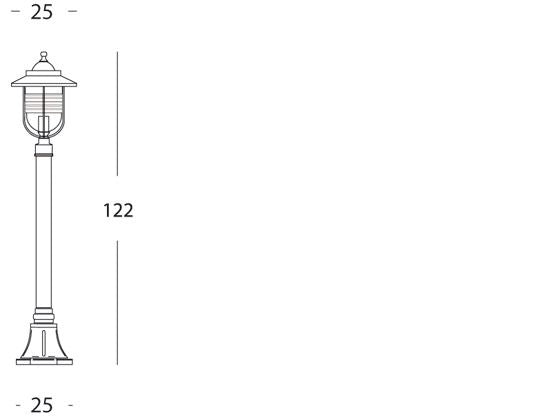 Lampada palo per giardino piccolo color ruggine da esterno linea porto.