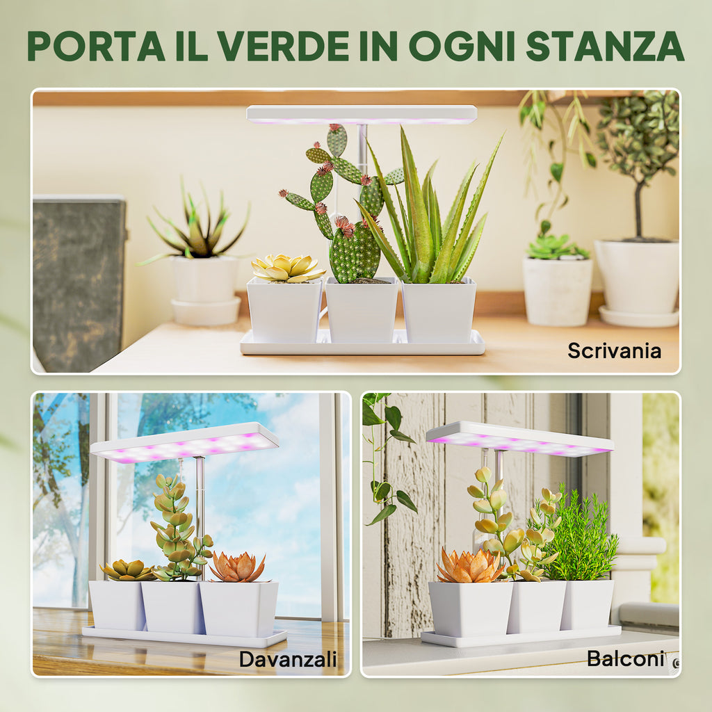 Lampada per Piante da Interno con 3 Vasi Autoirriganti Timer e 5 Livelli Bianco