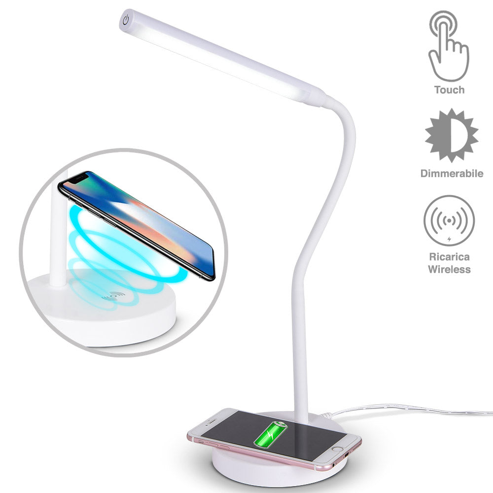 Lampada Scrivania Touch con Caricatore QI Wireless Charger Luce LED Dimmerabile