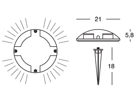 Lampada segna passo a croce 4x1w a led colore grigio grafite per esterno linea moon. Lampada segnapasso in alluminio. Calpestabile, max 500kg. Diffusore in termoplastico trasparente. Equipaggiato con 4 LED SMD da 1W. Flusso luminoso: 400 lumen. Temperatura di colore: 4000°K. Assorbimento: 100mA. Driver di alimentazione a 220V incluso. Pressacavo PG9. Installazione a pavimento senza necessità di scasso. Picchetto per installazione a terra incluso. Classe di protezione: IP65 Numero lampade: 4 Potenza massima lampade: 1W
