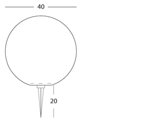 Lampada sfera da pavimento diametro 40mm colore bianco per esterno linea lounge. Struttura completamente in resina ad alta resistenza. Cavo di alimentazione mt 2 H05RN-F completo di spina schuko. Pressacavo di entrata PG9. Picchetto di supporto e fissaggio. Portalampada in porcellana con attacco E27. Adatto per lampade ad incandescenza e risparmio energetico. Diffusore interno in termoplastico trasparente incluso. Eventuale diffusore colorato non incluso, vedi sezione accessori. Lampada esclusa. Alimentazione 230V ~ 50Hz. Classe di protezione: IP54 Potenza massima lampade: 40W