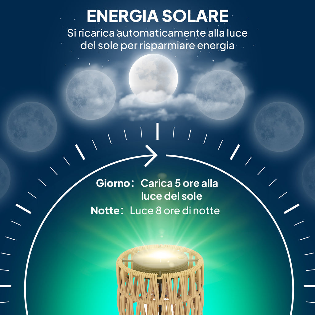 - BASE STABILE: I 3 pali della lampada da esterno solare sono solidamente ancorati a una base rotonda in acciaio per assicurare la giusta stabilità. Il rattan PE resistente ai raggi UV e la protezione IP44 contro l'acqua ne migliorano le prestazioni