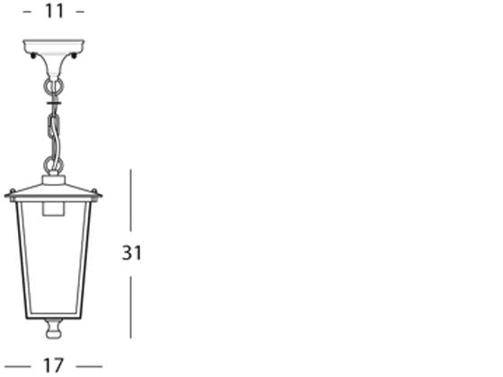 Lampada sospesa colore ruggine per esterno linea notorius. Struttura completamente in pressofusione di alluminio. Trattamento anticorrosivo con Verniciatura a polveri epossidiche. Diffusori in vetro in lastra trasparente. Sospensione con Contro-base di fissaggio a soffitto in termoplastico ad alta resistenza. Cavo di alimentazione H05RN-F 3G1 mmq. Paletto con cavo interno di alimentazione e Dispositivo di connessione. Viteria in ottone ed accessori per il fissaggio. Portalampada in porcellana con attacco E27. Copri-portalampada di alluminio in tinta. Adatto per lampade ad incandescenza e risparmio energetico. Lampada esclusa. Alimentazione 230V ~ 50Hz. Classe di protezione: IP43 Potenza massima lampade: 60W