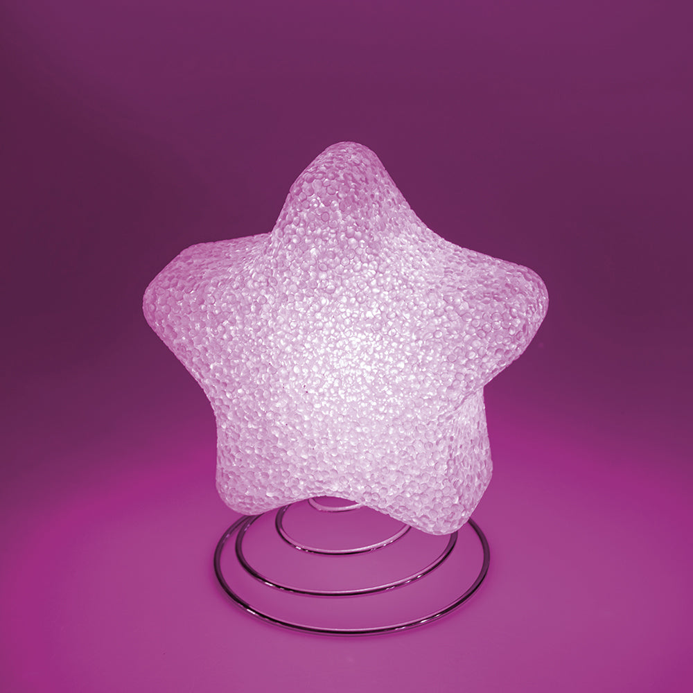 Ecco un idea graziosa e simpatica per riempire quel comodino che ti è sempre sembrato troppo vuoto o per popolare quella scrivania a cui hai sempre voluto dare un tocco in più di colore e vivacità: le lampade stella led illuminano l interno della nostra casa creando un atmosfera magica e accogliente. I colori brillanti, ma allo stesso tempo delicati, non disturbano l occhio e la base a spirale garantisce inoltre stabilità alla lampada rendendola adatta anche al riponimento su mensole e scaffali.