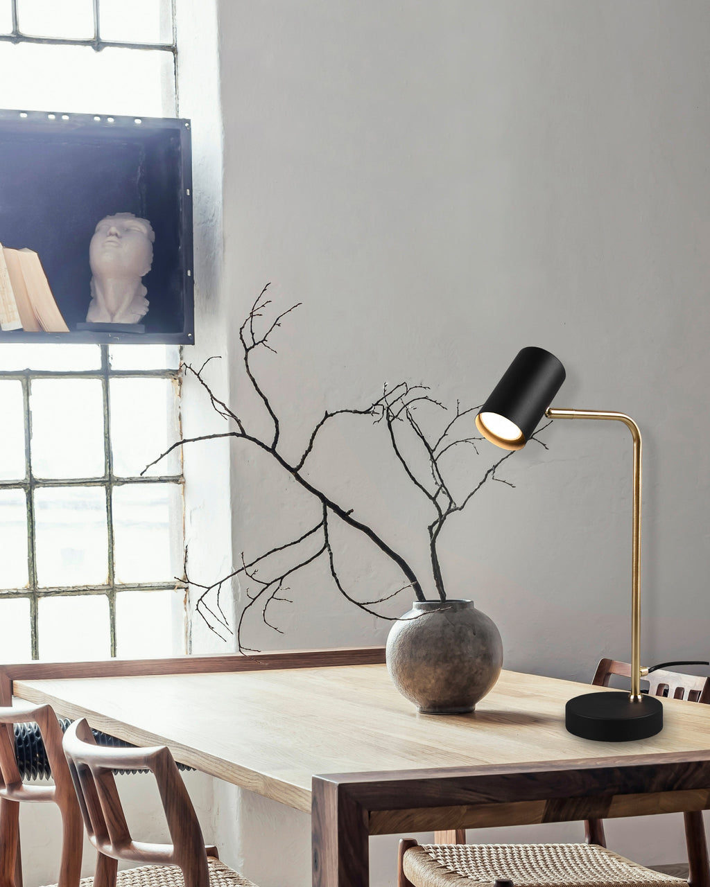 Marley Lampada Da Tavolo Spot Cilindro Ottone Satinato + Nero H. 45Cm