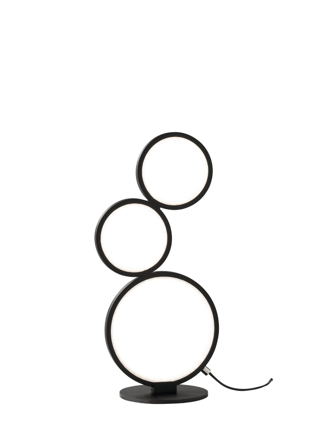 Rondo Lampada Da Tavolo Led 3 Cerchi Metallo Nero Opaco Con Varialuce H. 45Cm