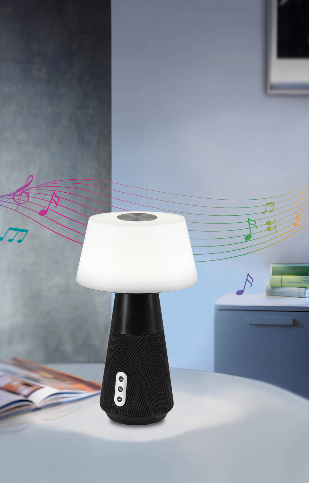 Dj Lampada Da Tavolo Antracite Con Cassa Bluetooth Separabile Ricaricabile Con Luce Dinamica H. 28Cm