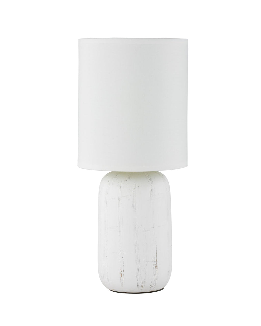 Clay Lampada Da Tavolo Con Base Ceramica Effetto Legno E Paralume Bianco H. 35Cm D. 15Cm
