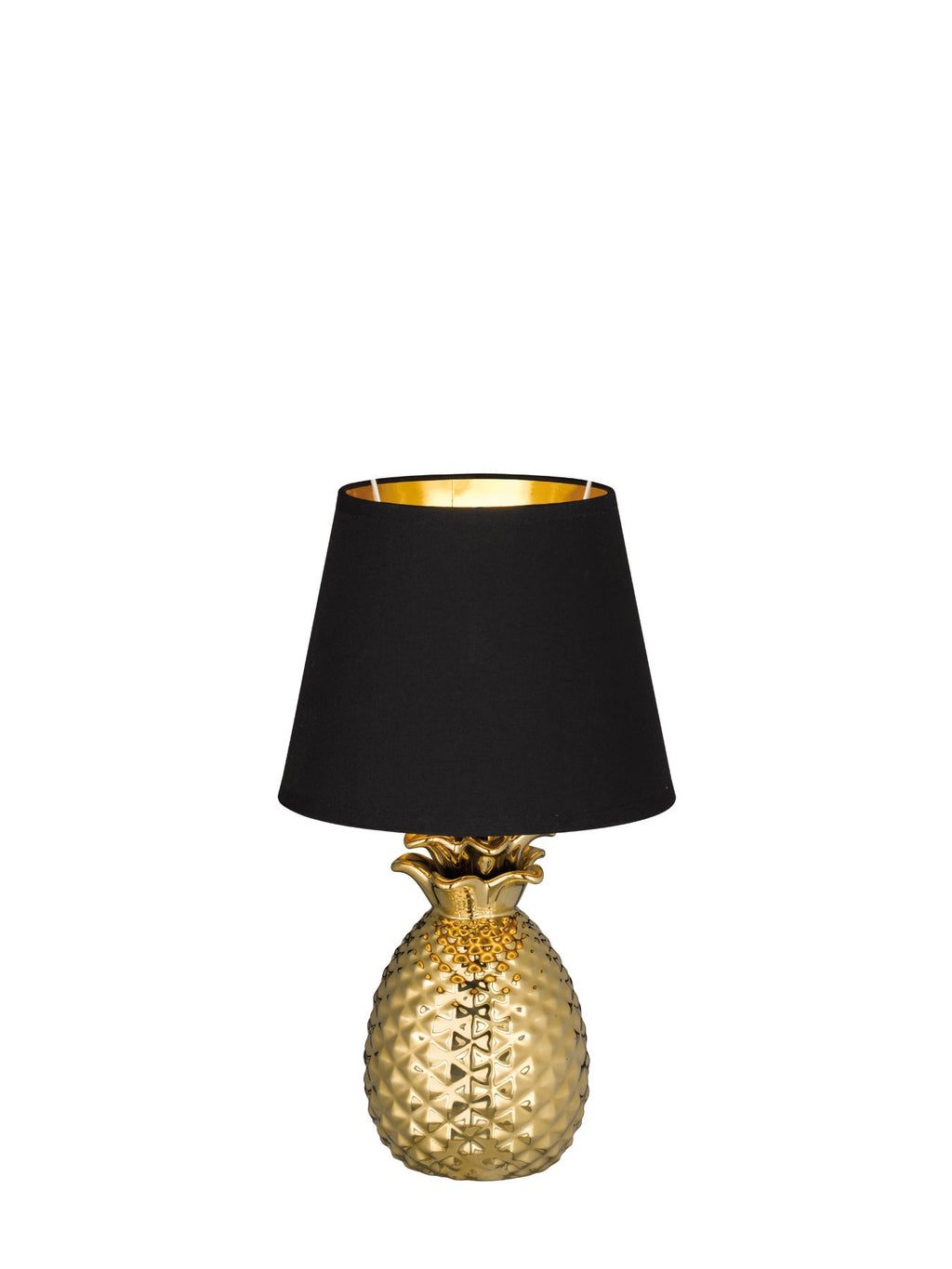 Pineapple Lampada Da Tavolo Ceramica Ananas Oro Con Paralume Nero E Oro H.35Cm