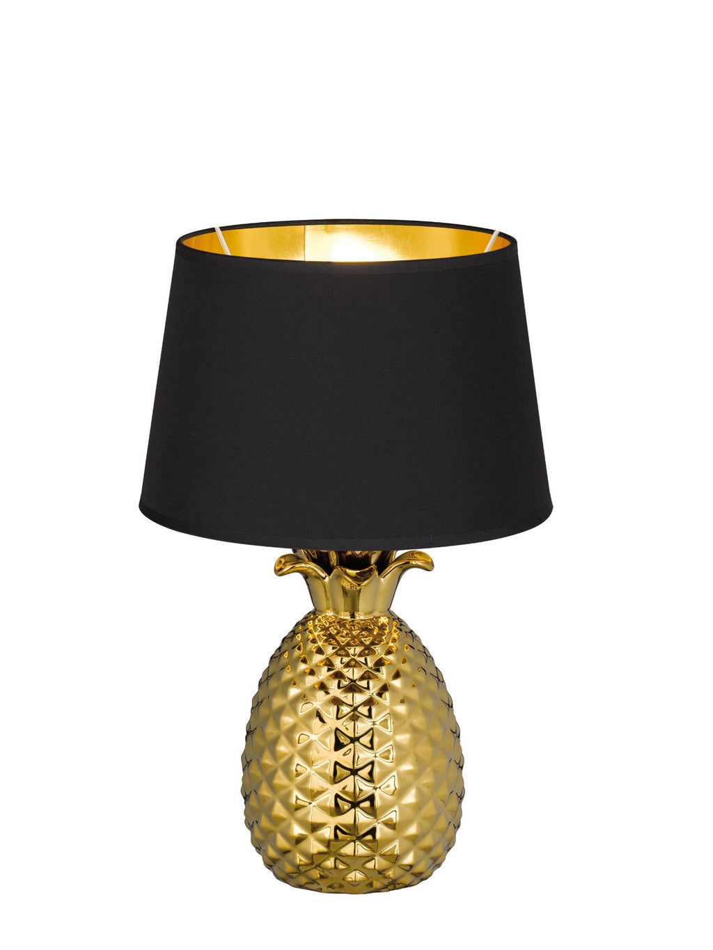 Pineapple Lampada Da Tavolo Ceramica Grande Ananas Oro Con Paralume Nero E Oro H.45Cm