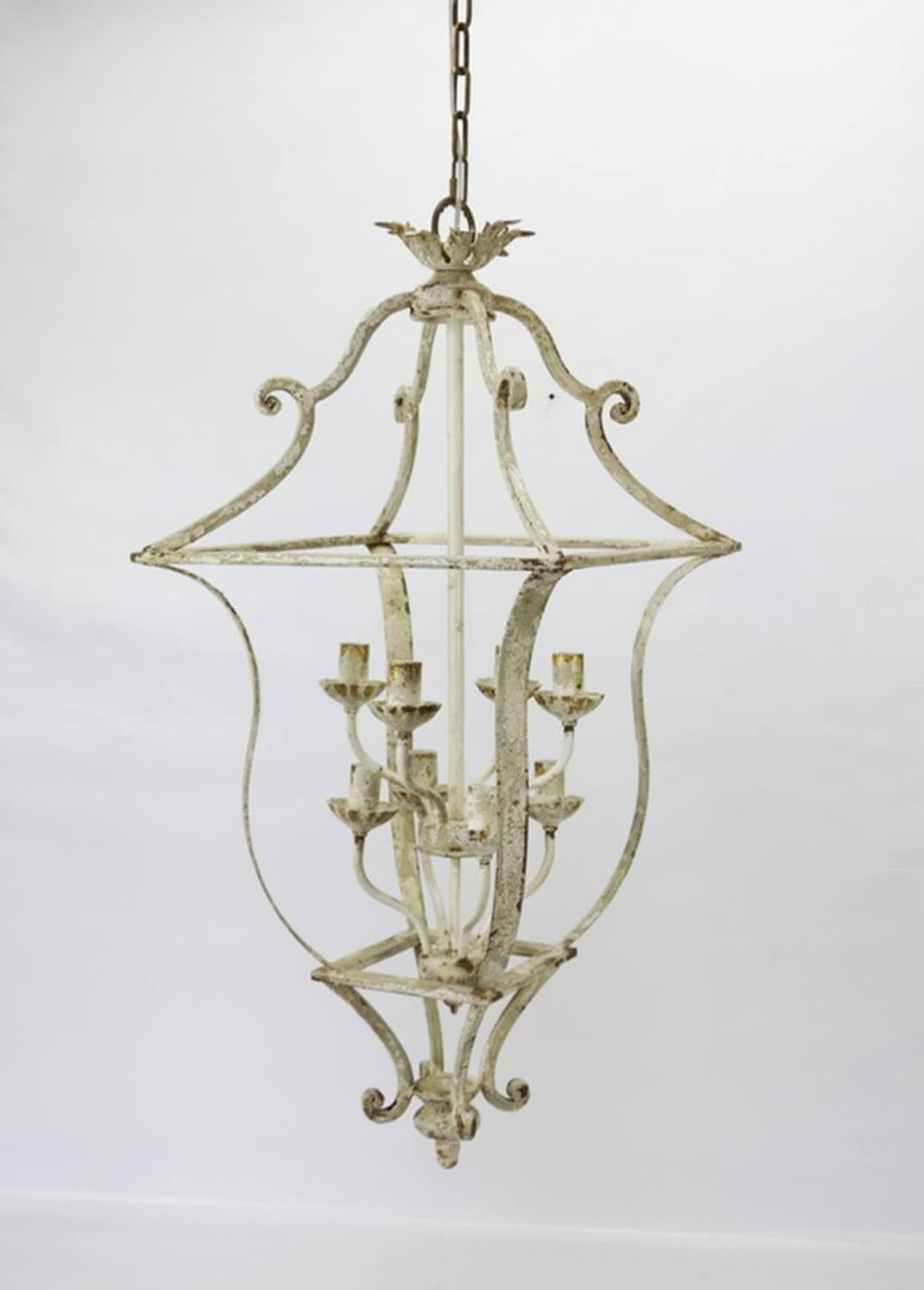 LAMPADARIO METALLO SBIANCATO 8 PUNTI LUCE CON ATTACCO CM45X45H98