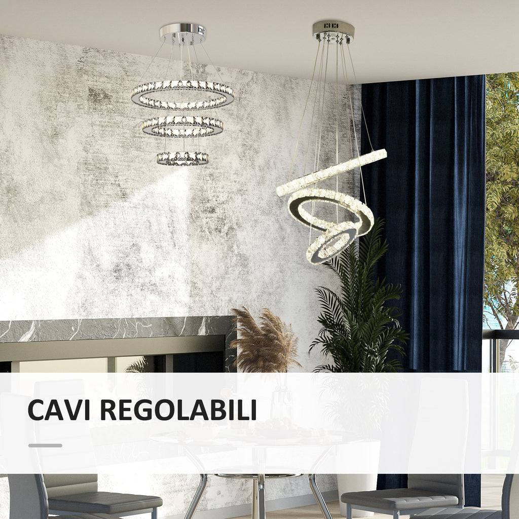 - Lampadario LED con 3 anelli dotati di cristalli e telecomando incluso
