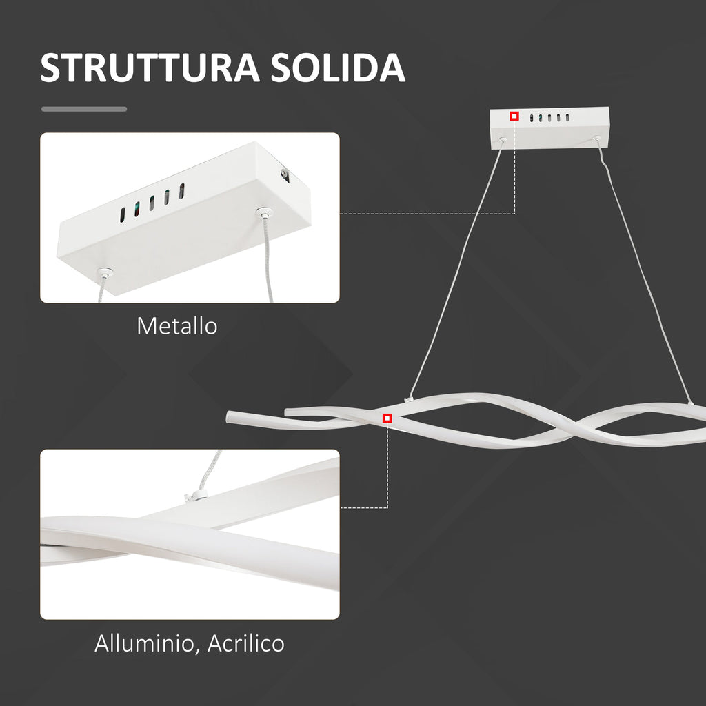 Il lampadario moderno ondulato a LED di accende lo stile in casa tua. La sua forma ricorda l'elica del DNA, un design originale ed elegante che si completa con un'illuminazione da 6500k. Il cavo di sospensione permette di regolare l'altezza per adeguare il lampadario all'ambiente in cui si trova. Attacco al soffitto stabile e resistente per garantire un fissaggio sicuro del lampadario a sospensione.