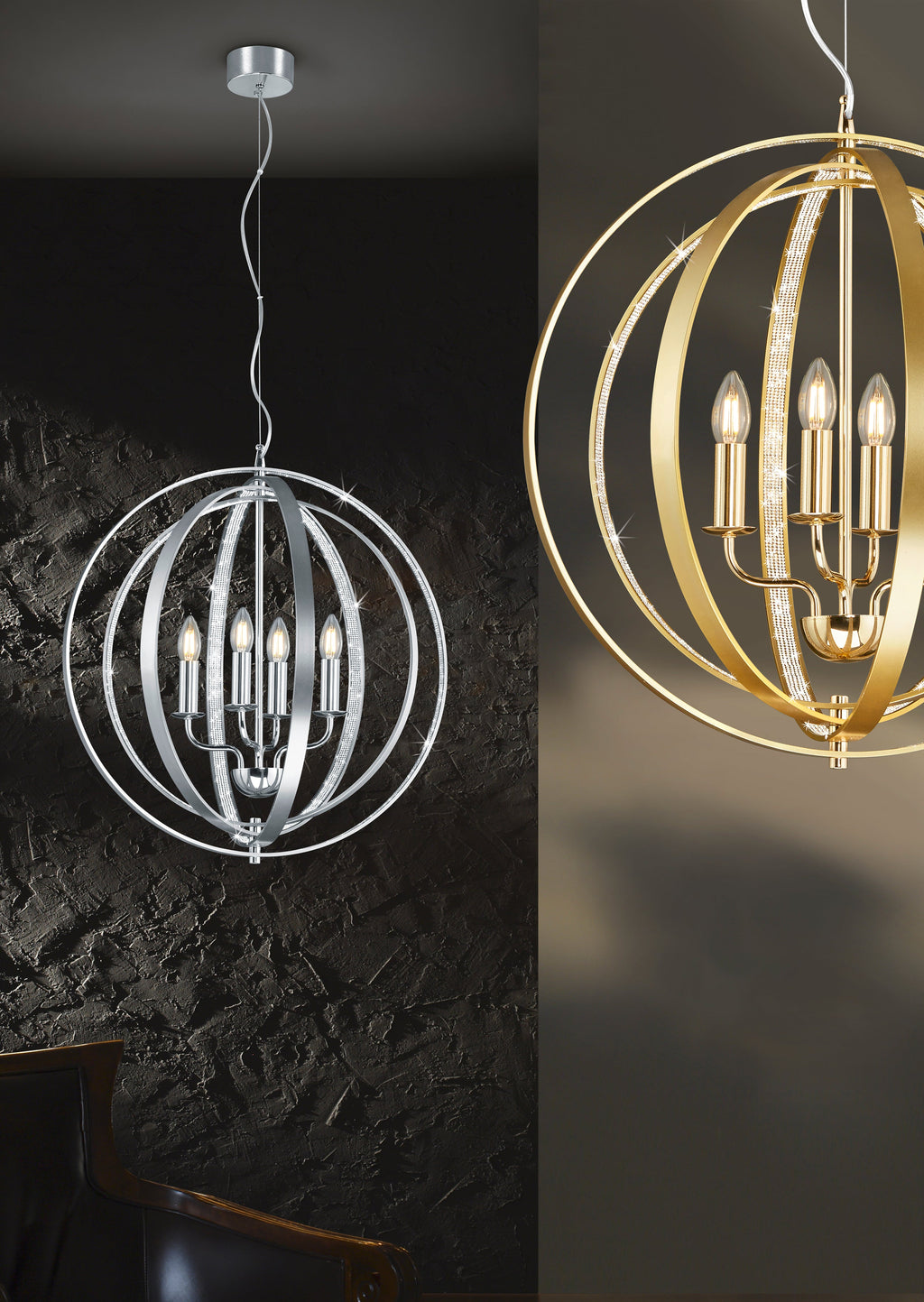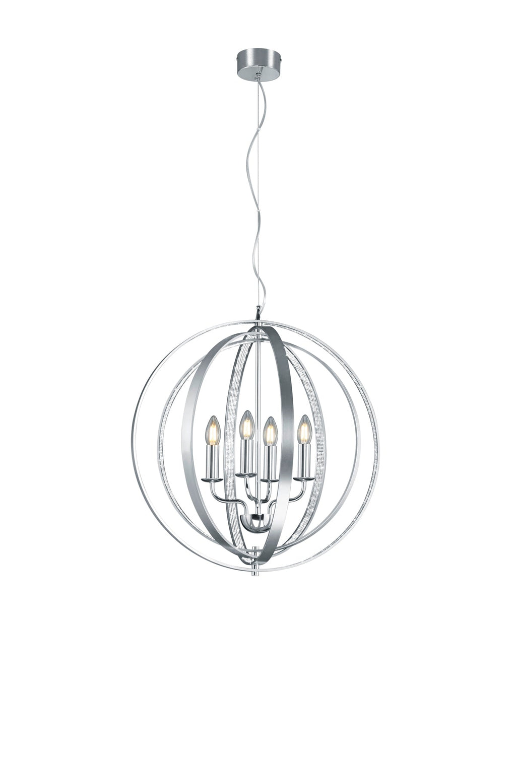 Candela Sospensione 4 Cerchi Metallo Alluminio Satinato Orientabili Con Interno Decoro Cristalli D. 56Cm, H.150Cm