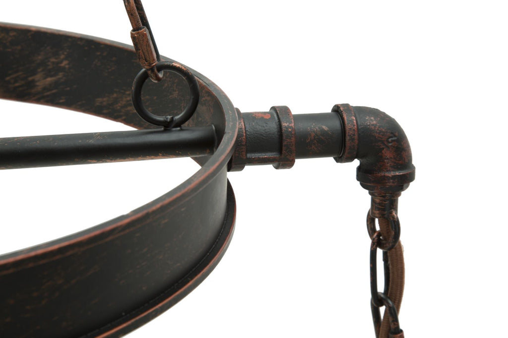 Lampadario Ingranaggio 3 Luci Ø54x104 cm in Ferro e Legno Nero e Rame