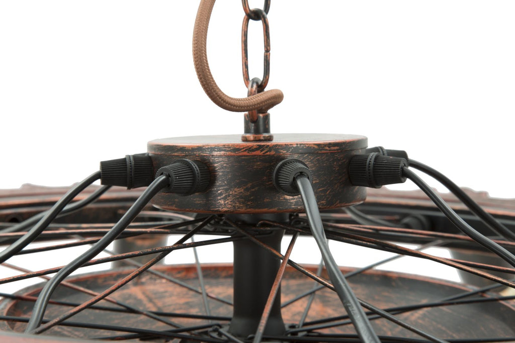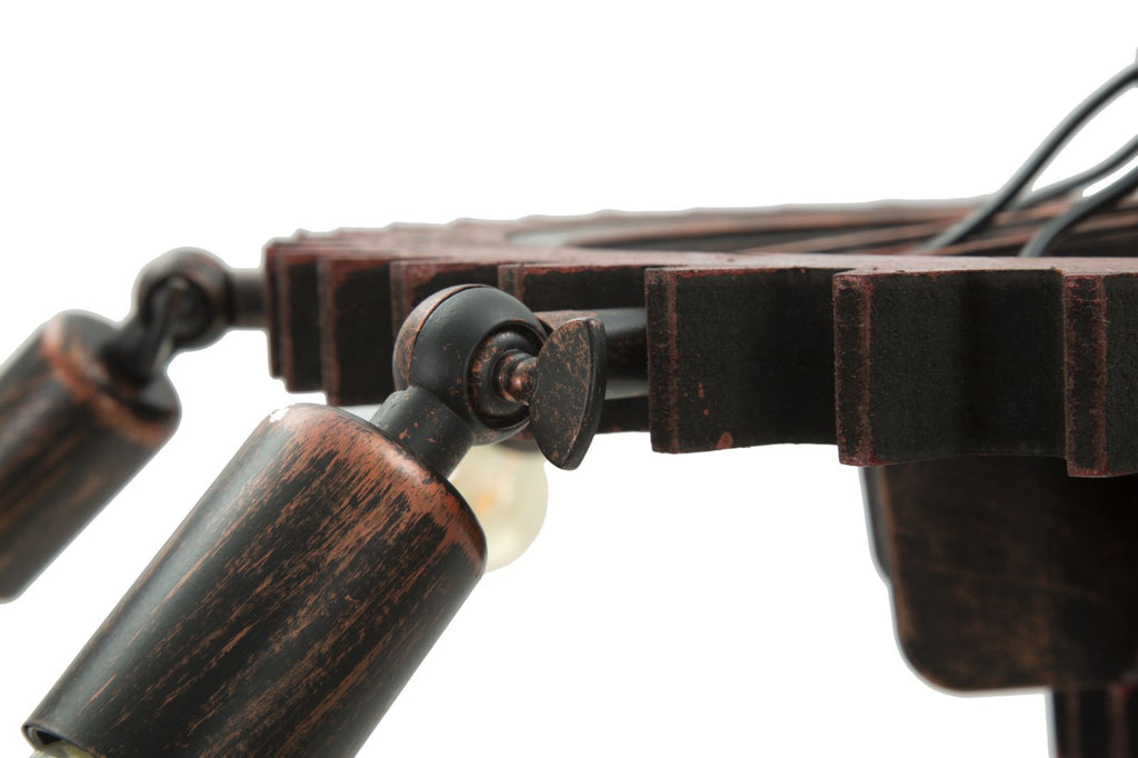 Lampadario Ingranaggio Double Ø73,5x16 cm in Ferro e Legno Nero e Rame