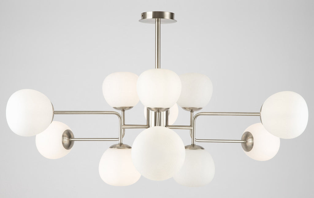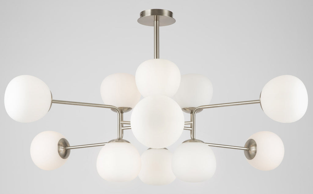 Struttura in Metallolo con diffusori in vetro acidato. Tige regolabile, costituita da 3 parti.