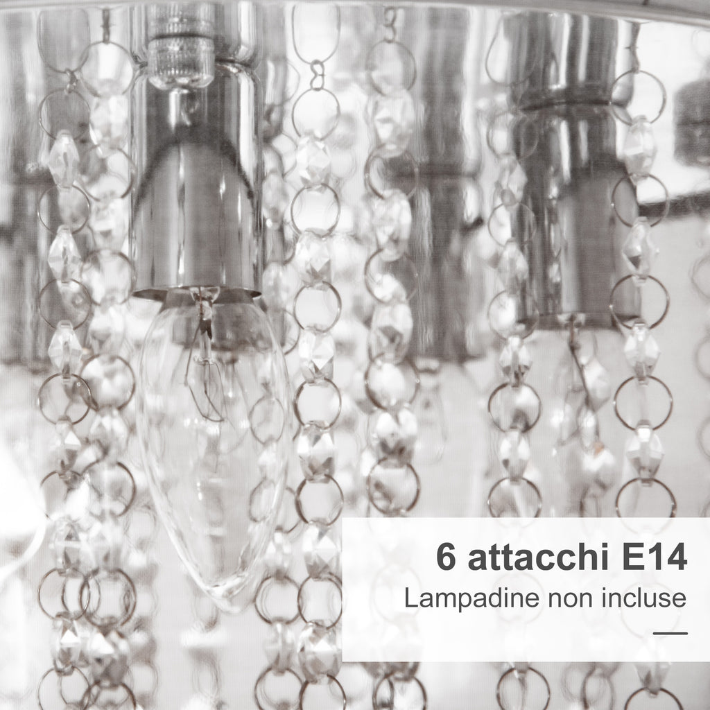 Lampadario Moderno a Gocce Ø40x33 cm E14 40W Paralume in Tessuto Argento