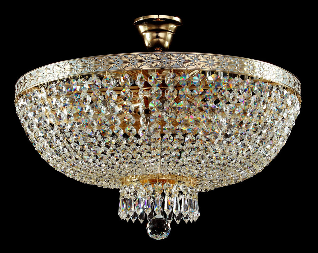 Struttura in Metallolo, finitura oro. Cristalli di diverse dimensioni e forme.